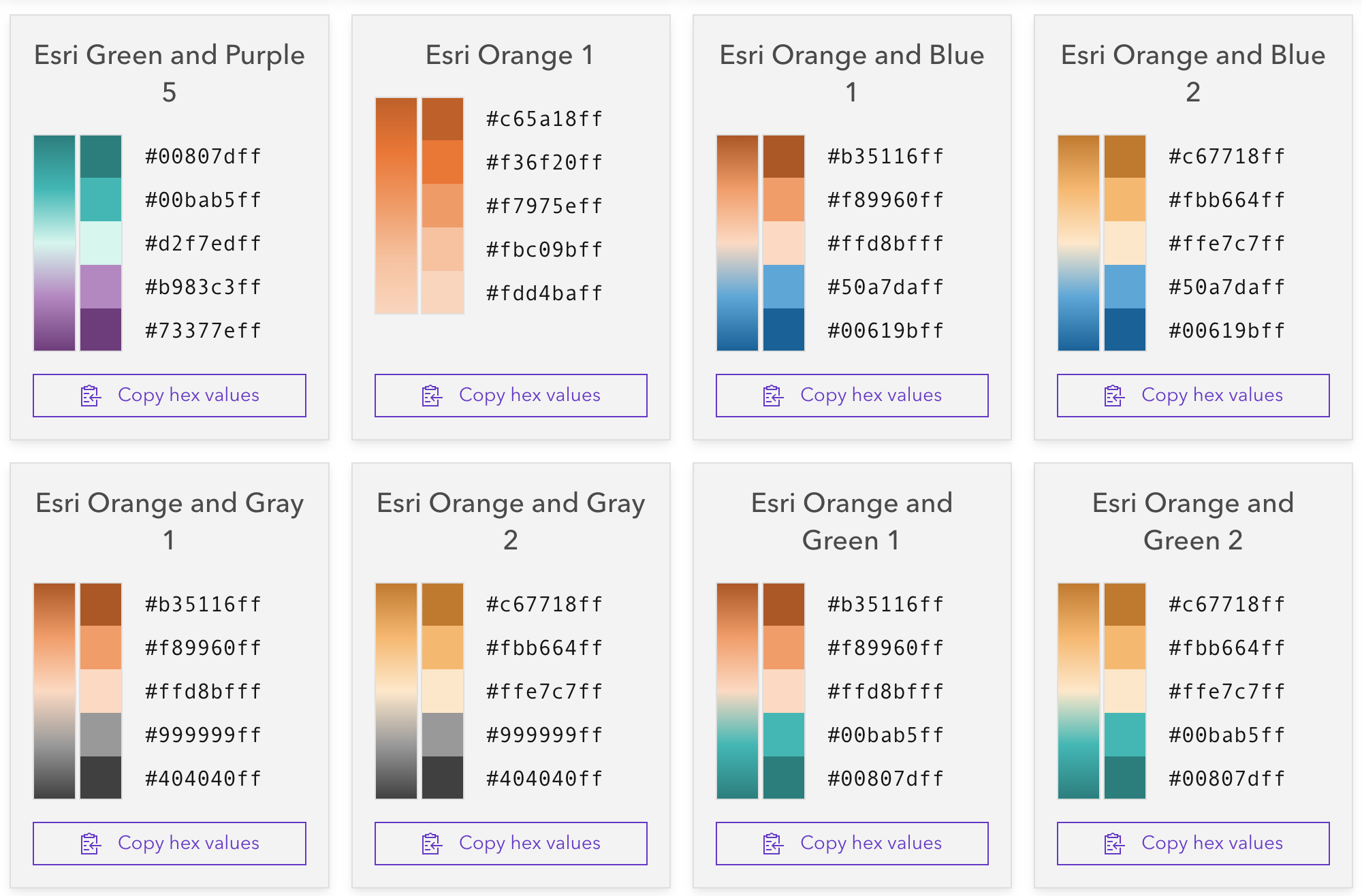 The ArcGIS Maps SDK for JavaScript provides hundreds of color ramps to developers to improve the mapping experience. Numerous cartographers with decades of experience in color theory and knowledge of how perceptual differences between colors work created these color ramps using Adobe Illustrator.
